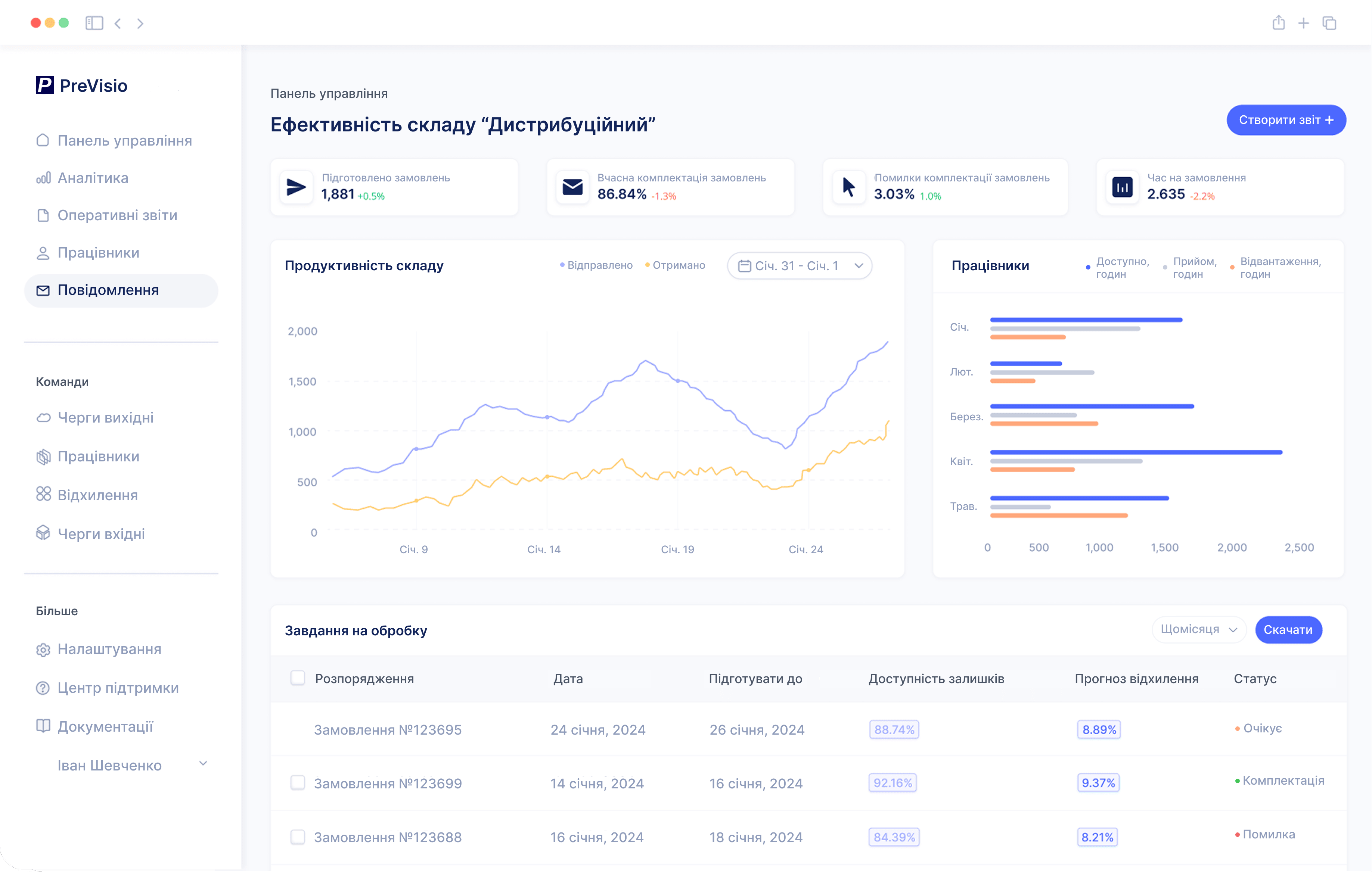 PreVisio WMS дає повну видимість операцій, ресурсів і черг завдань — без складних налаштувань і довгих впроваджень.